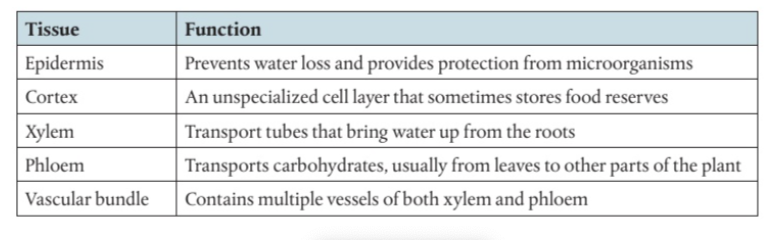 1. What are the three main tissues of plants?