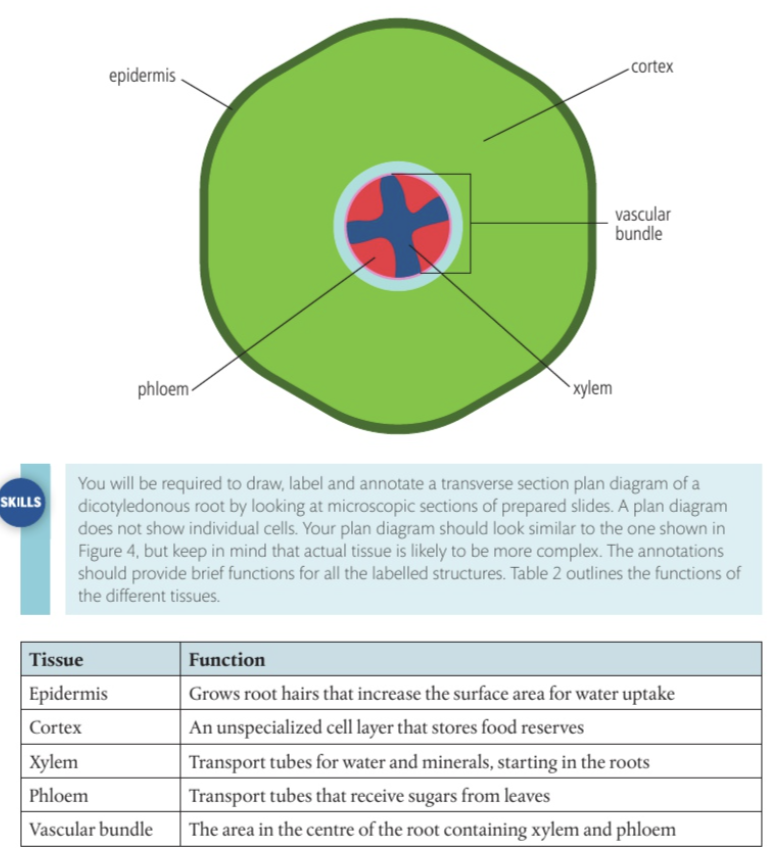3. Draw, label and annotate a cross section of a root