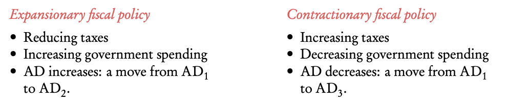 Fiscal policy government intervention by either adjusting taxes or adjusting government spending