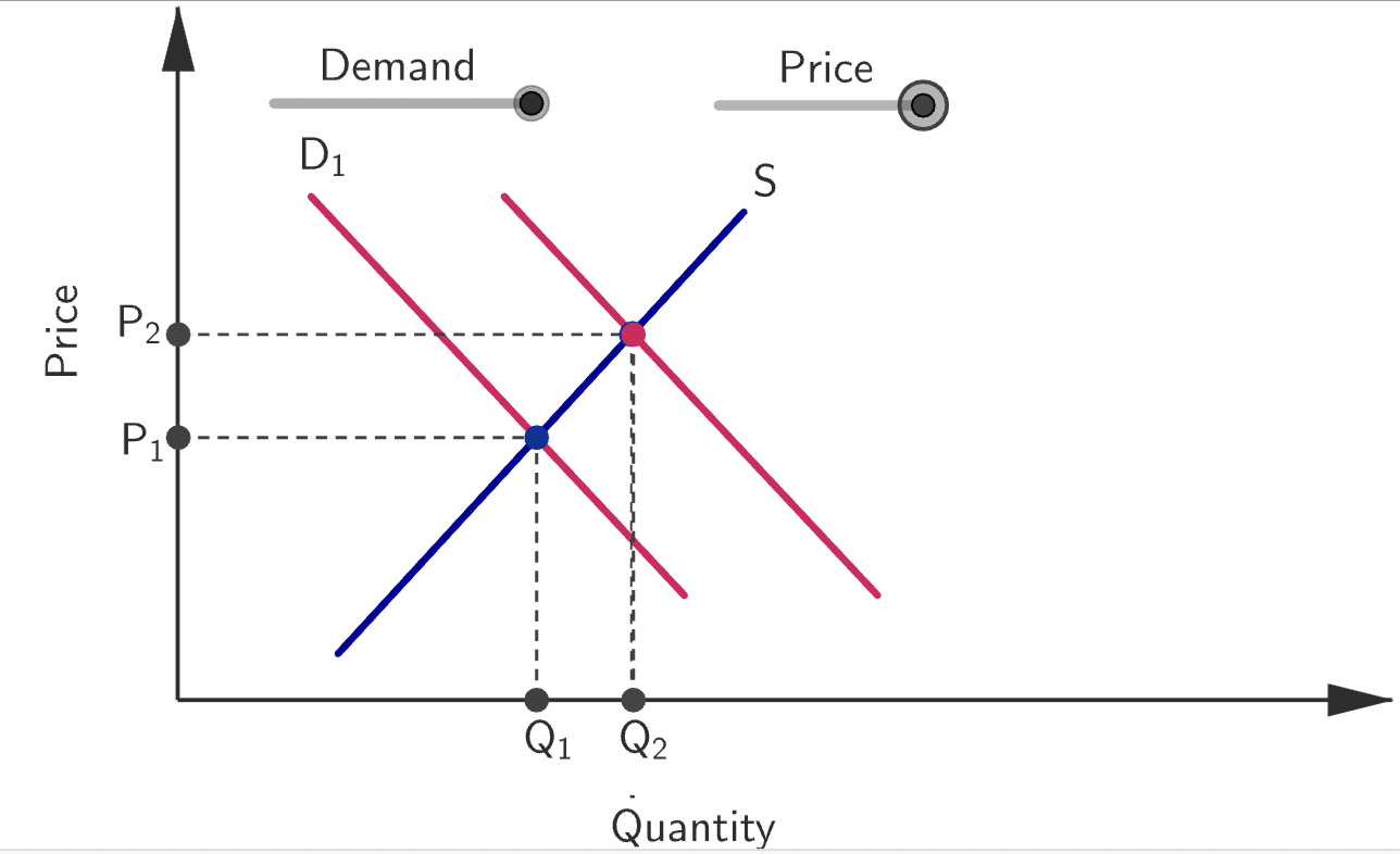 A movement along the demand curve for a good can be caused only by a change in the price of the good. according to the law of demand if price increases, Quantity demanded decreases and there is an upward movement (b→a) if price decreases and quantity demanded increases there is a downwards movement (a→b). The change in Q due to the change in P is called the change in quantity demanded.