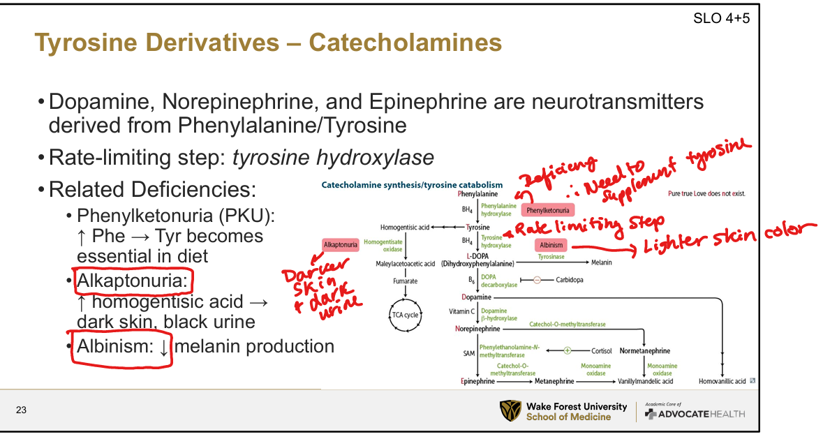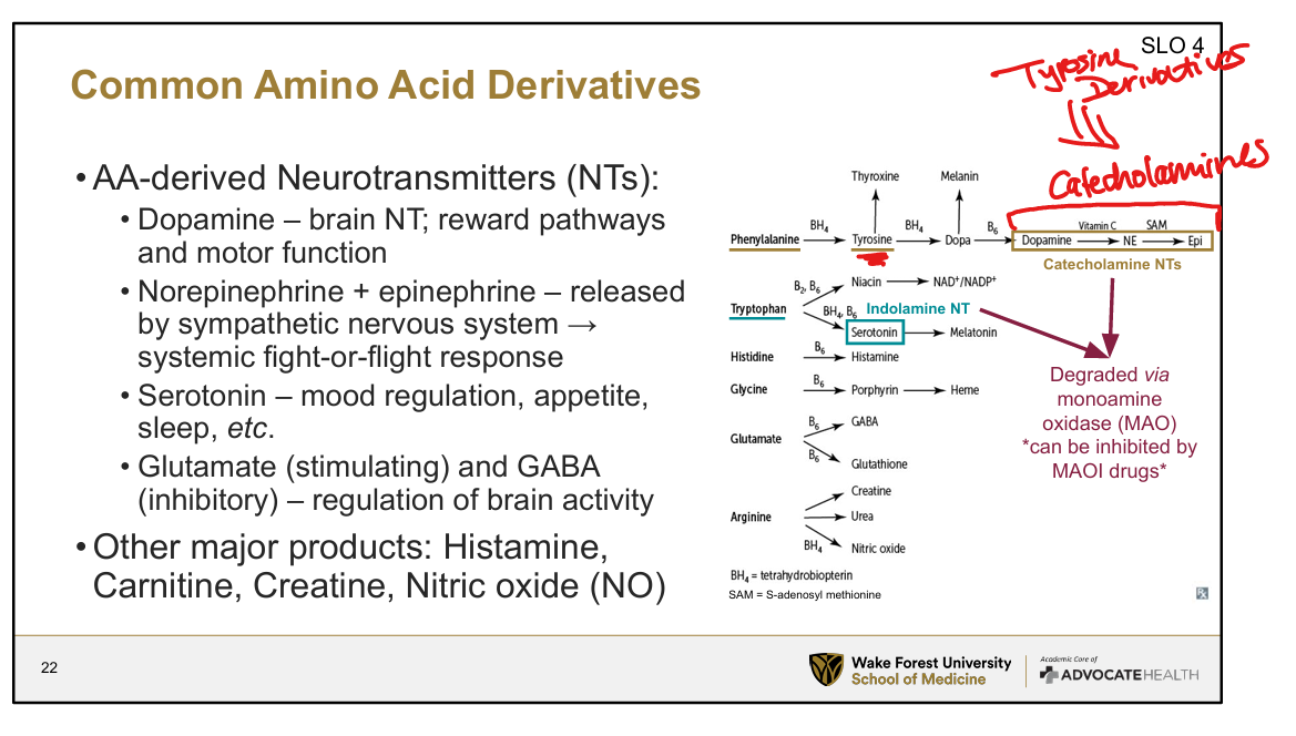 Which neurotransmitters are derived from tyrosine?