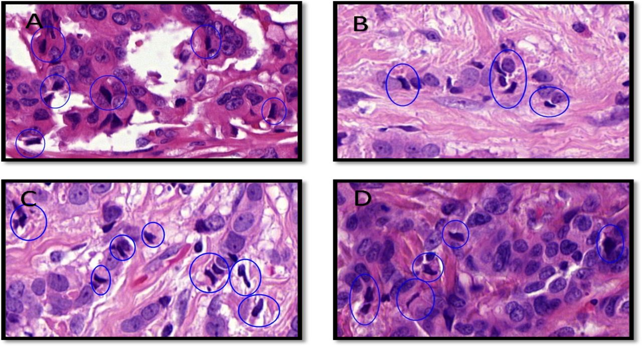 Score 1 (low): 0–5 mitoses per 10 HPFs