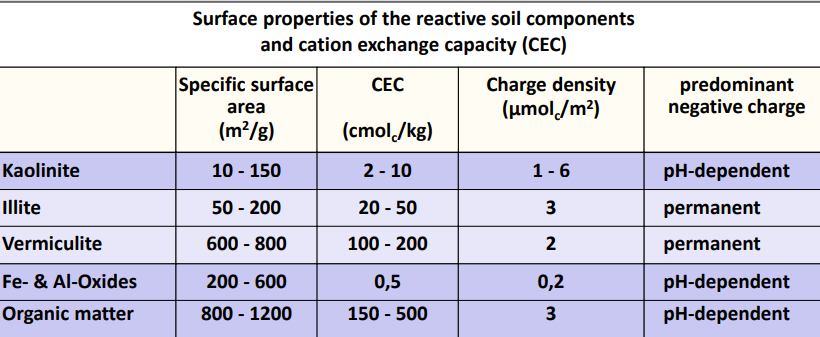 Total soil charge = permanent clay charge + variable pH-dependent charge