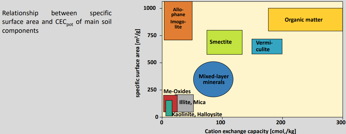 → High cation exchange capacity (CEC) and strong control on soil fertility