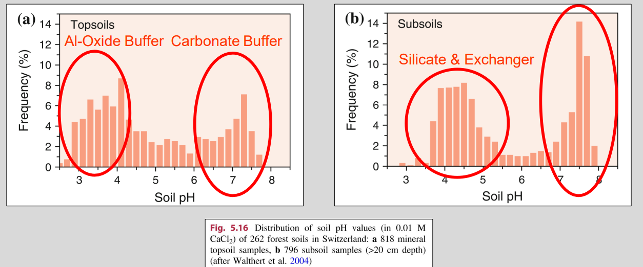 Effect on pH: Soil pH is strongly buffered and stays ≥ ~7