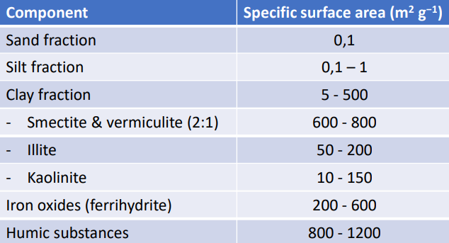 Organic matter, clay minerals, Fe/Al (hydr)oxides