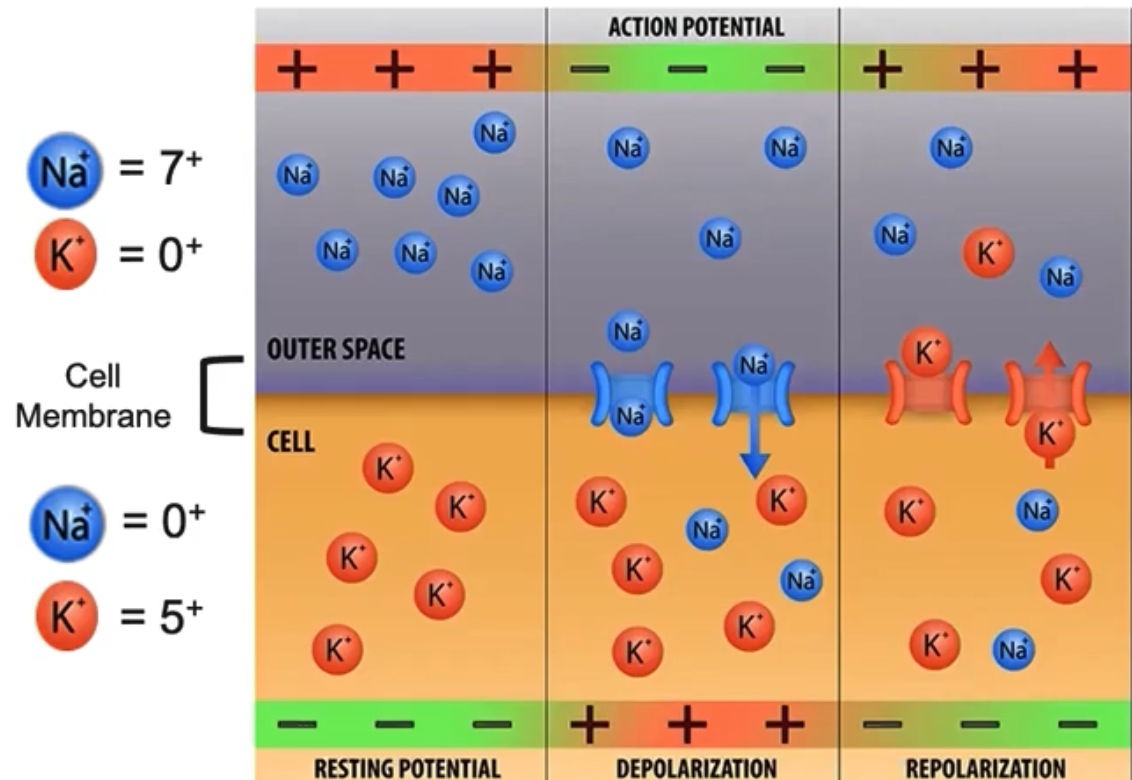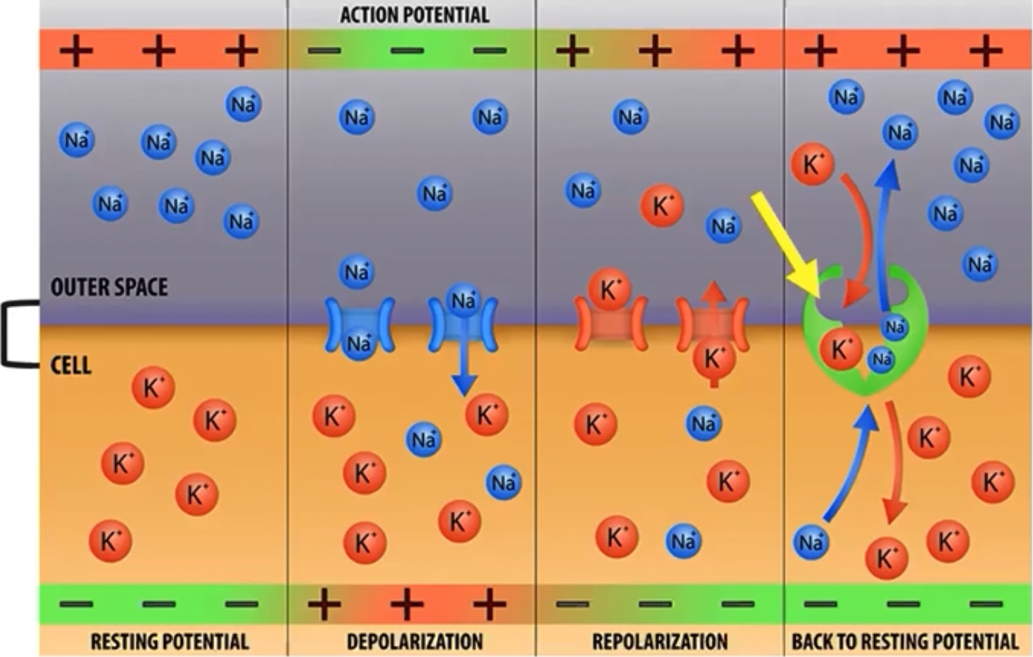 The Na+/K+ pump and ATPase balance sodium and potassium levels on each side of the membrane.