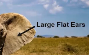 The flattened shape of the ear allows the elephant to dissipate more thermal energy as blood flows closer to the surface