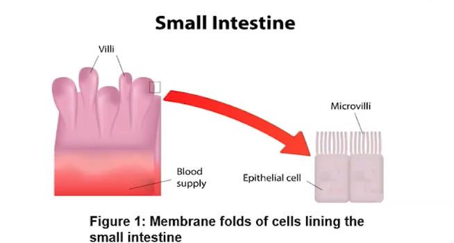 The surface of each villi has additional microscopical projections called microvilli, which further increase the surface area available for absorption of nutrients.
