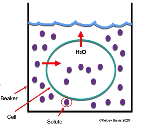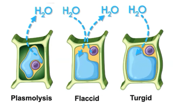 EXAMPLE: If the water potential inside the cell is –3 bars and outside the cell is –6 bars, water will move out of the cell. This is because water moves from higher water potential (less negative) to lower water potential (more negative), so it moves toward the outside of the cell.