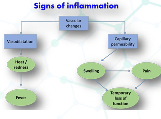 Prostgalndins: vasodilation, ↑vascular permeability, blood flow and healing
