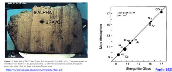 1983: gasses in ETT 79001 found to match atmospheric measurements taken by viking mission on Mars