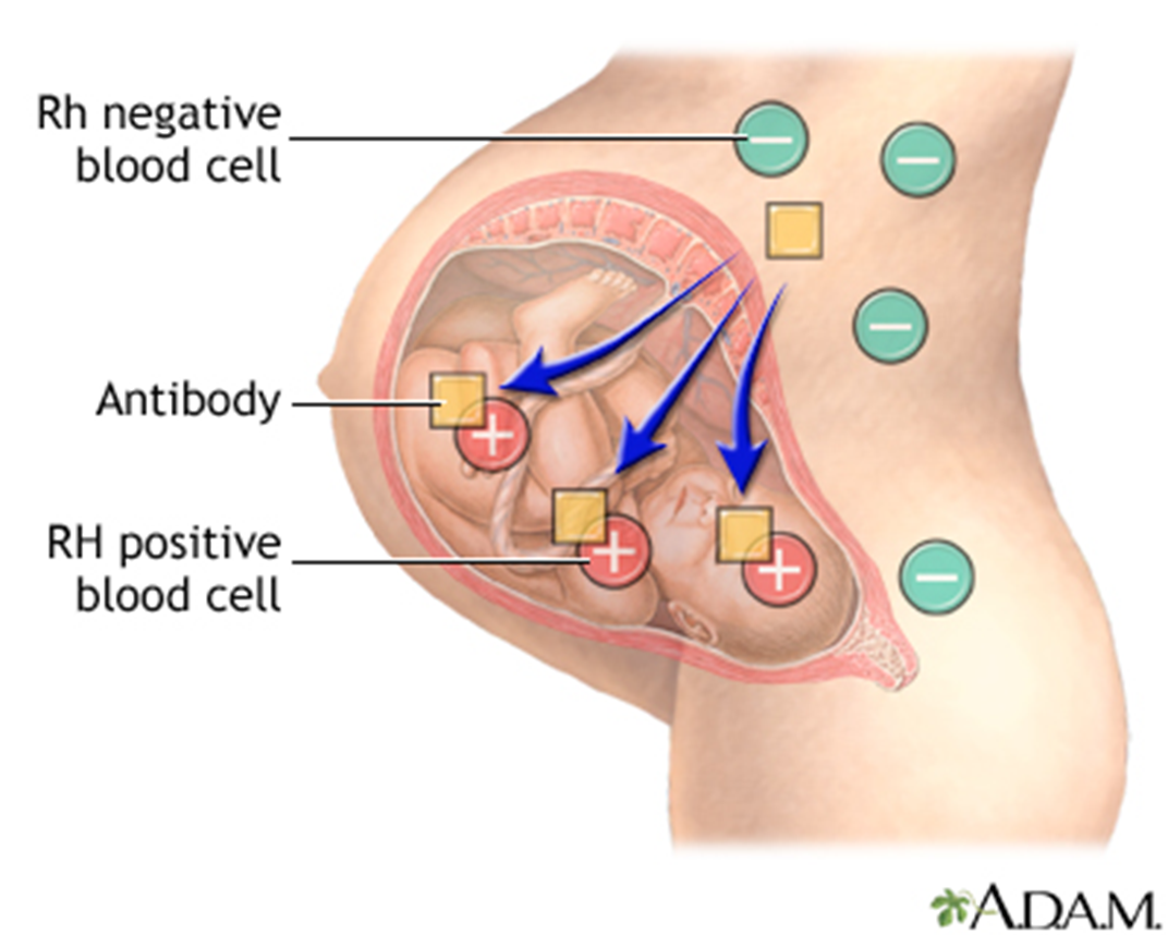 mom and baby: mom is A blood type and baby is A+, 1st pregnancy is fine but 2nd causes issues