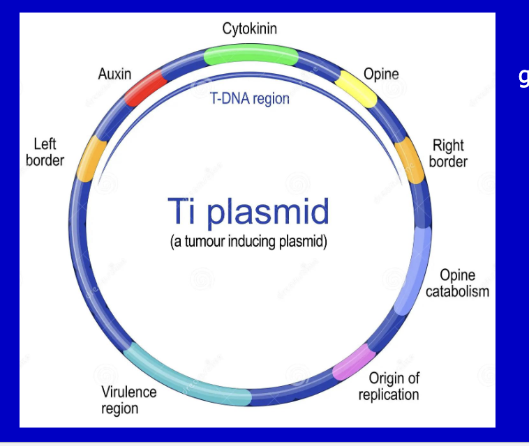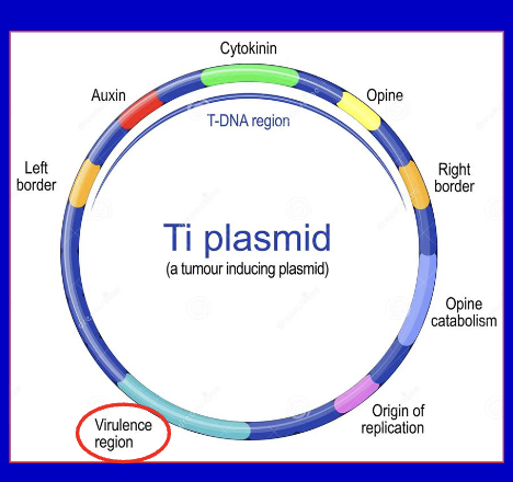 - The role of the Ti plasmid= cause the infection in the plant cells.
