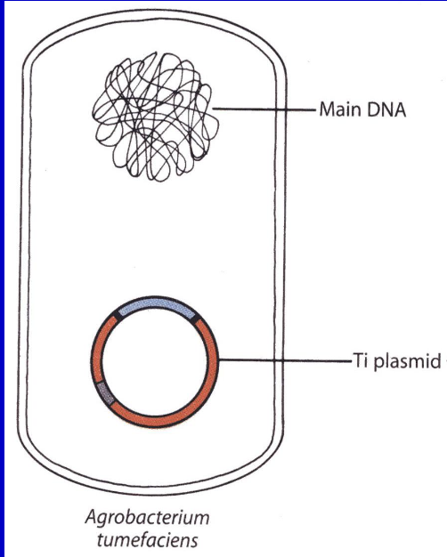 Agrobacterium has an extra plasmid-= Ti plasmid (tumour inducing plasmid).