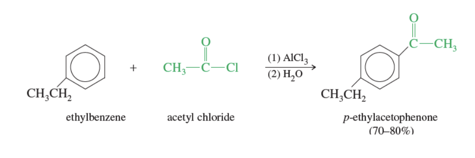 carboxycylic acid + socl2 —> +alcl3 → r-c=o +alcl4