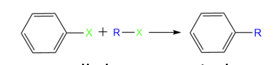 the reagent + Alkyl Haldie —> Aryl Alkyl final coupling product