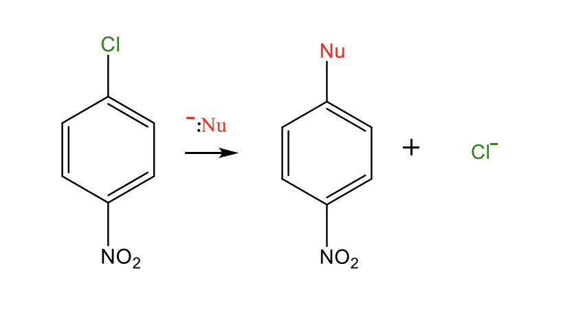 When a nucleophile replaces a benzene with 2 substitutents (strong electron withdrawing group and a leaving group