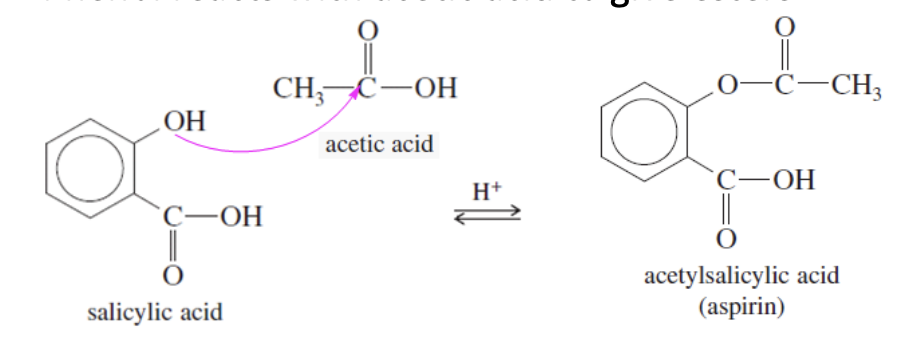 Phenol acylation: phenol reacts with acetic acid, producing esters