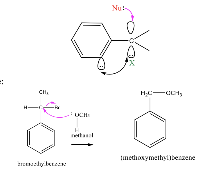 the nucleophile attacks the ring at the halogen site, preparing it for nucleophilic substitution