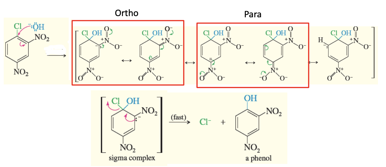 in nucleophilic substitution, the EWG must be at the ORTHO OR PARA SITE