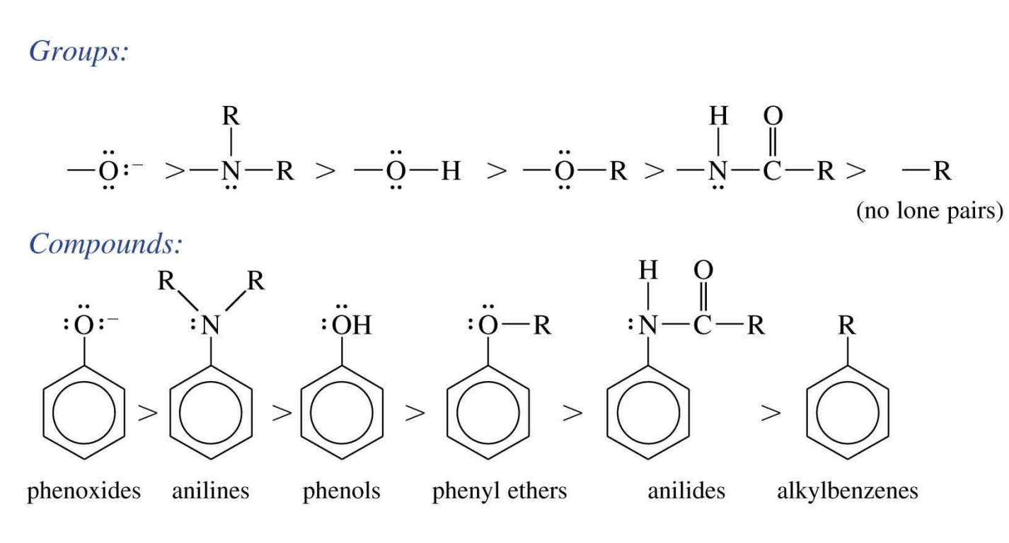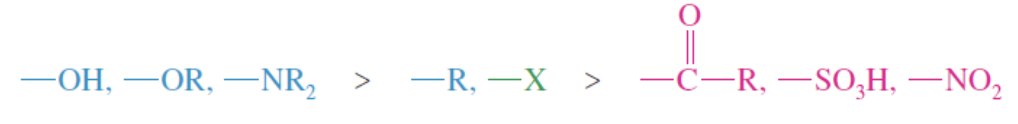 Moderate ortho & para activators: R (alkyl) > Halogens
