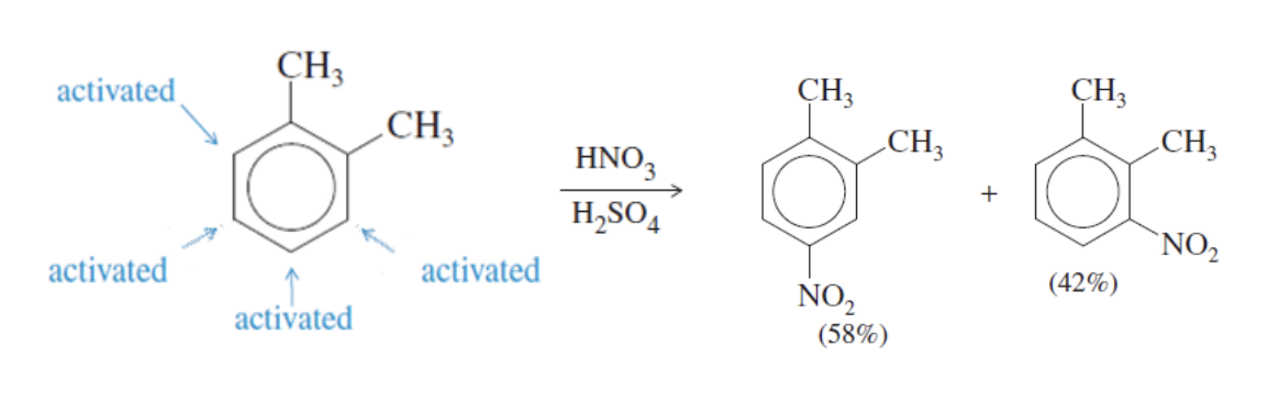If a benzene has 2 substituents that are both activating or both deactivating and they want the new group to be attached to different reaction sites —> it produces mixed products