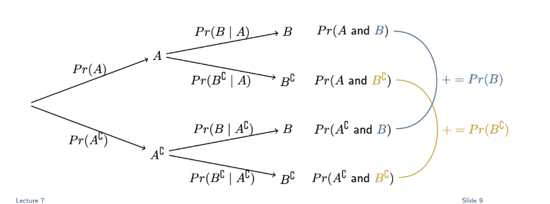 Pr(B) = Pr(B|A)*Pr(A) + Pr(B|Ac)*Pr(Ac)