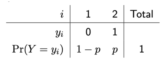 Binary/dichotomous: Allocates each case to 1 of 2 categories (e.g. coin lands head or tails (H/T), ind is pet owner or not (yes/no), or represented in numbers 0/1)