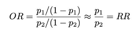 Relative Risk (ways to compare probability of 2 groups, p1 and p2)