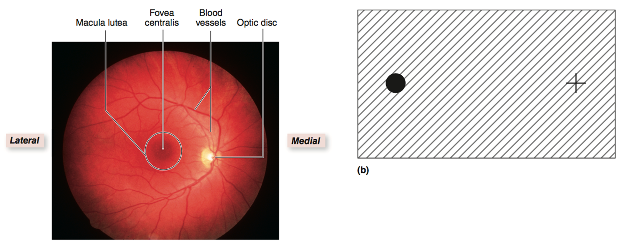 Pit in the macula lutea with highest cone density → Sharpest vision