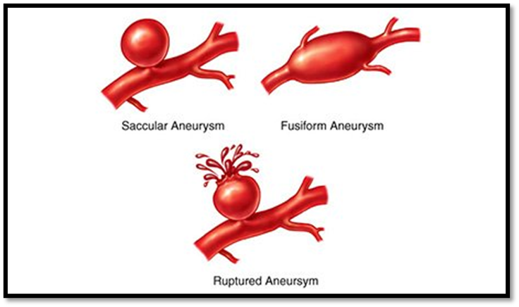 An aneurysm is a weak, bulging spot in a blood vessel that can pop.