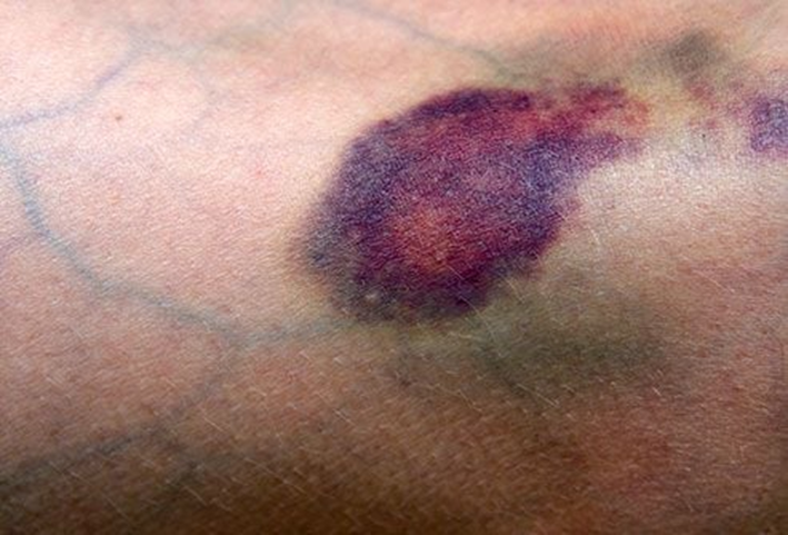 Small, red or purple pinpoint spots on the skin caused by tiny bleeding under the skin.
