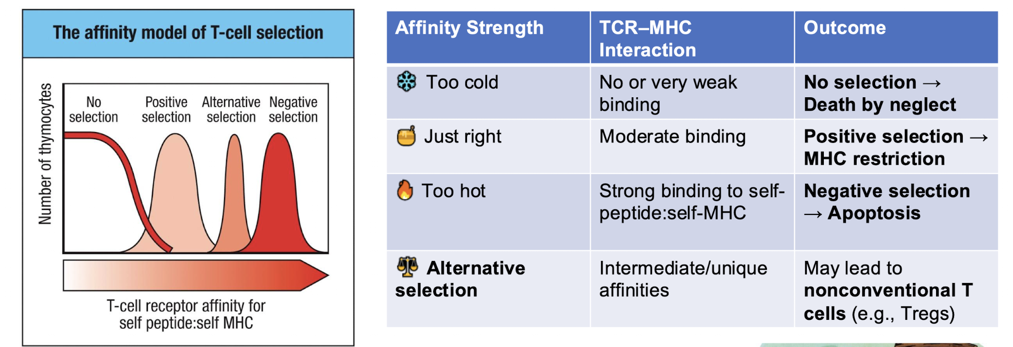 • Cells that bind self-peptide:self-MHC too strongly die by apoptosi