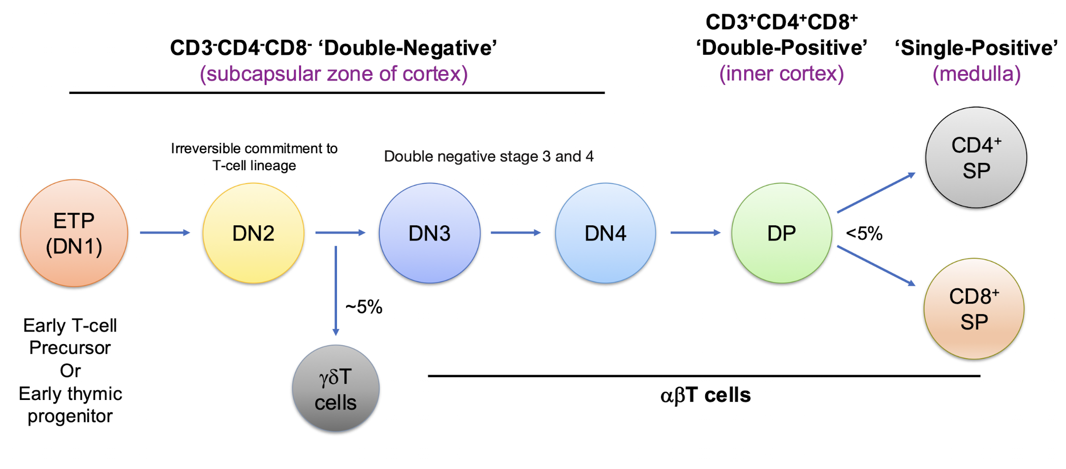 ETPS receive notch signalling from thyme epithelial cells (TECs) → essential for T cell lineage commitment → required during early paces of thymocyte differentiation up to DN3
