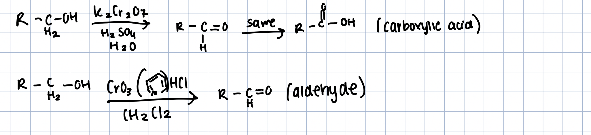 K2Cr2O7 in H2SO4 and H2O - overoxidize to carboxylic acid