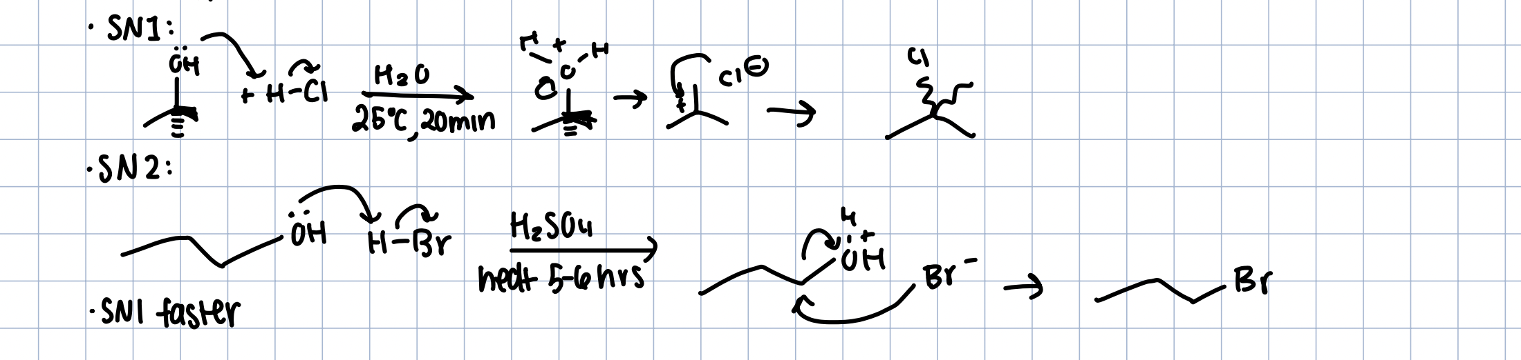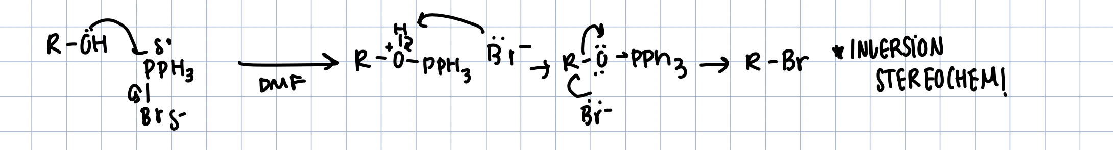 Is protonated by H+, SN2 rxn, then again the alcohol is protonated to good LG and SN2 again