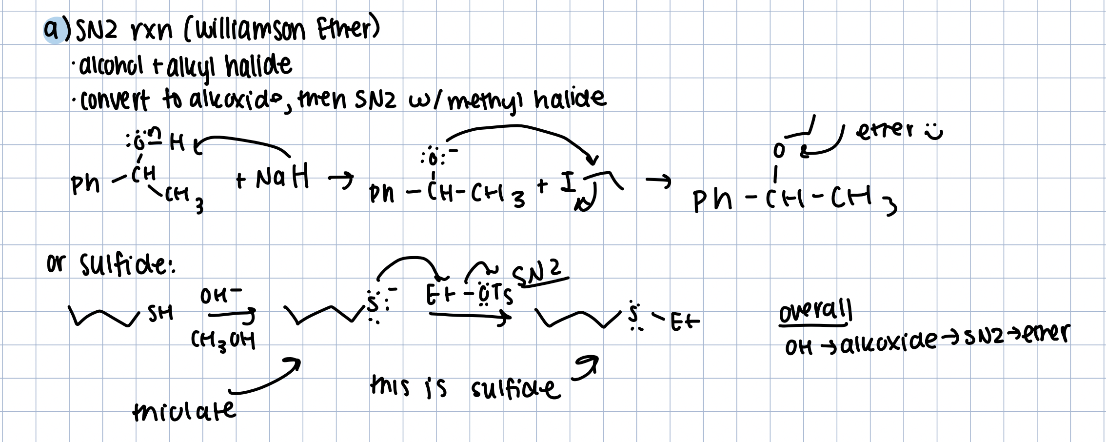 convert to alkoxide (or thiolate), then SN2 to get the ether/sulfide