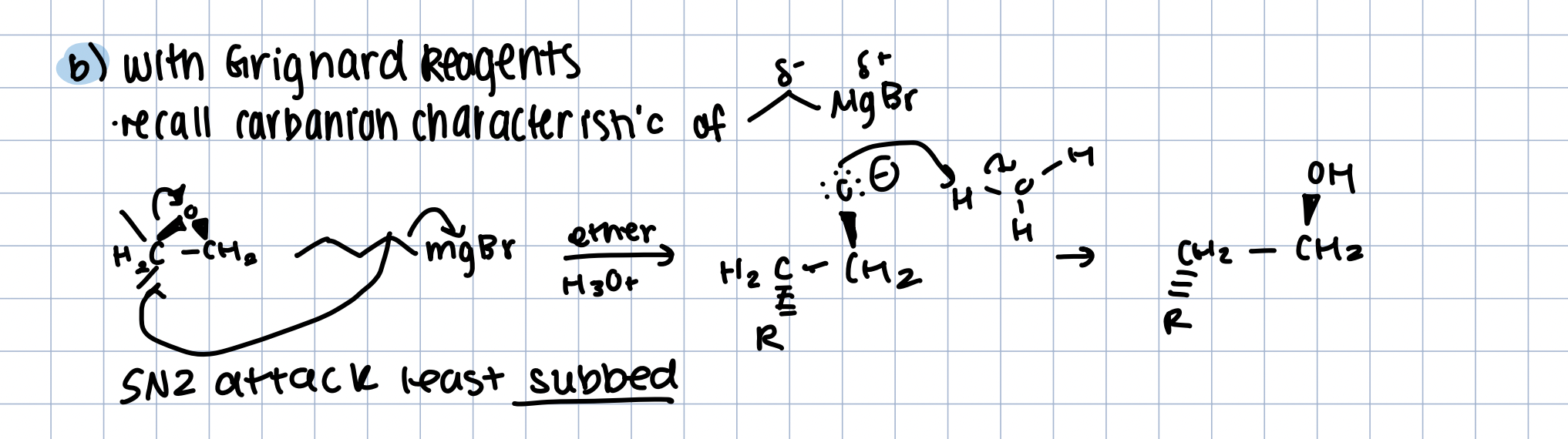 Sn2 attack by R- MgBr, O- protonated by H3O+