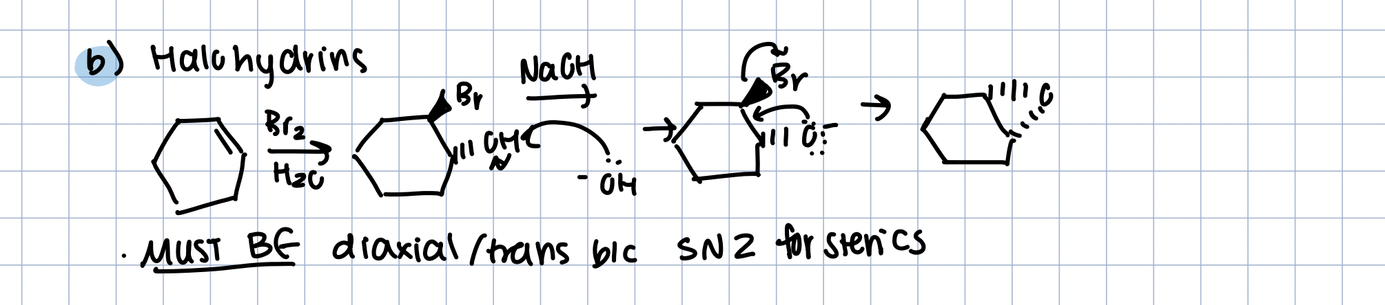 One step peroxyacid (mCPBA), Halohydrins (2 steps)