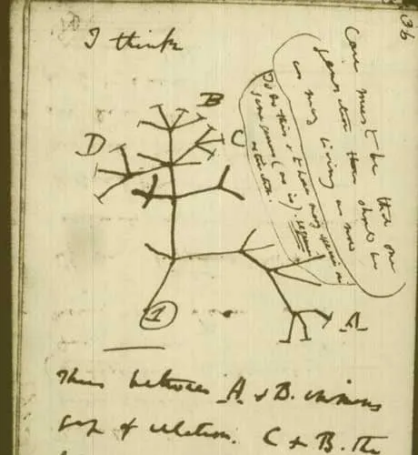 The evolutionary history of a group’s organisms depicted in a branching diagram