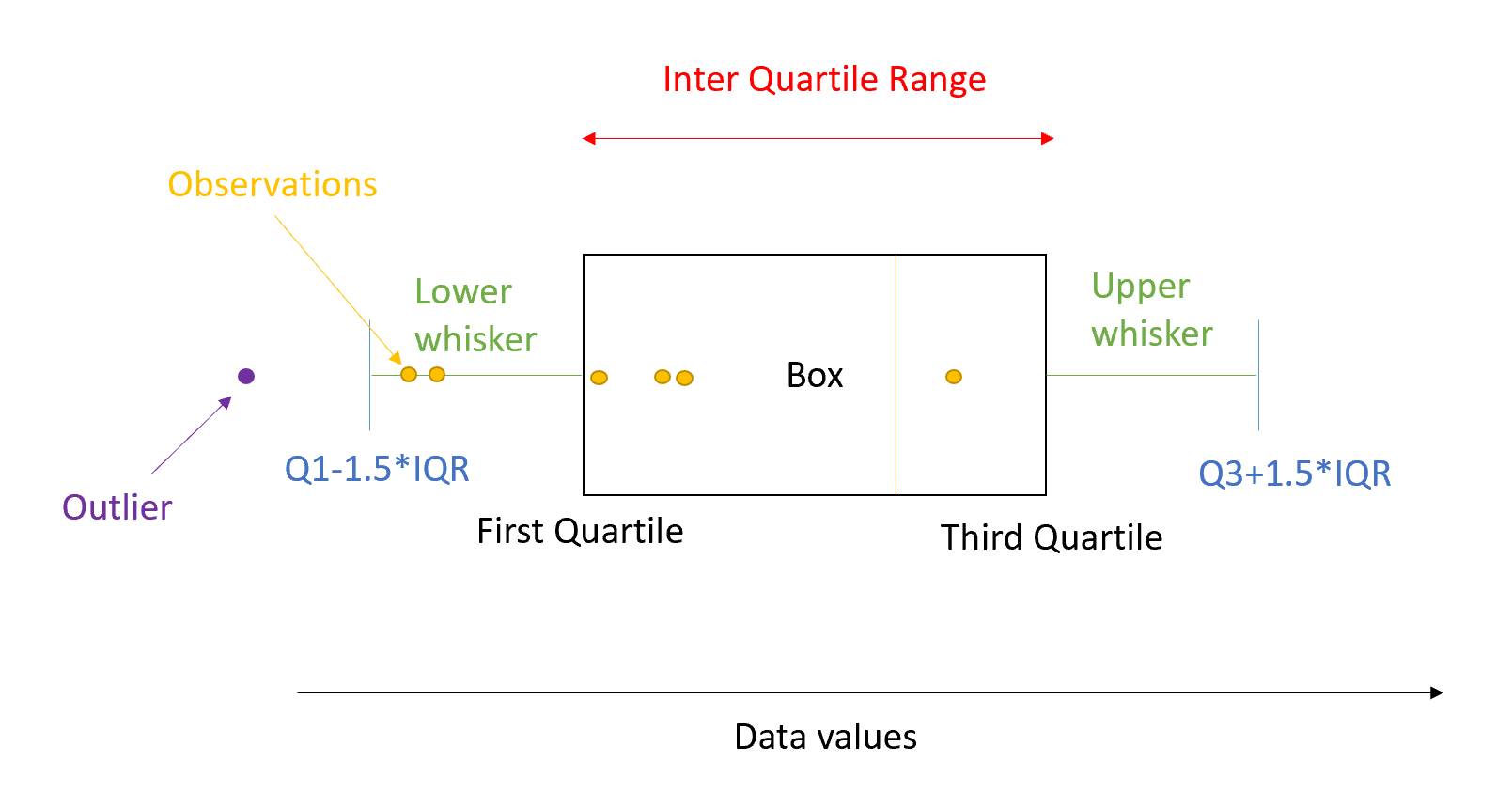 Q1 - 1.5 × 1QR → anything below this boundary is an outlier