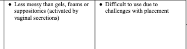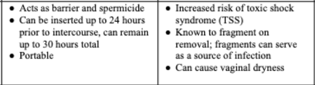 Vaginal gel, foams, suppositories, contraceptive film, contraceptive sponge (polyurethane)