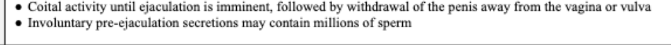 Coitus interruptus is the penis is withdrawn from the vagina before ejaculation.