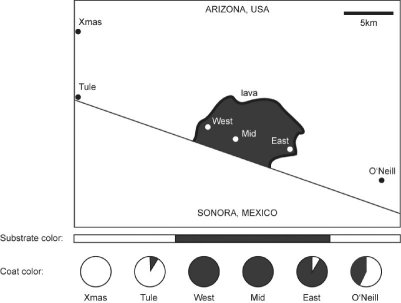 Refer to the accompanying figure. Which one of the following is NOT a plausible hypothesis to explain the differences in caterpillar appearance observed in this population?