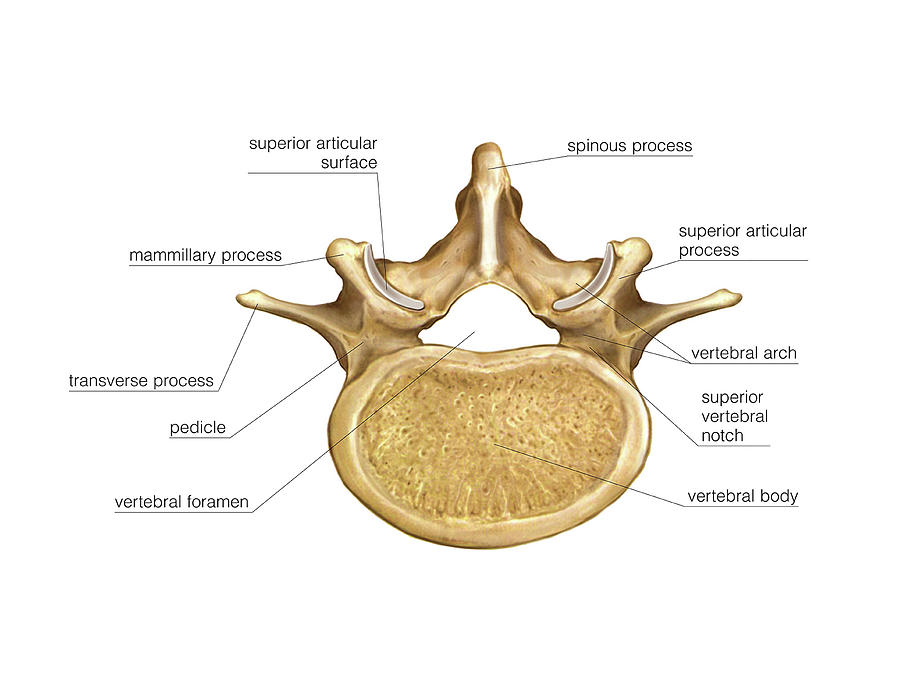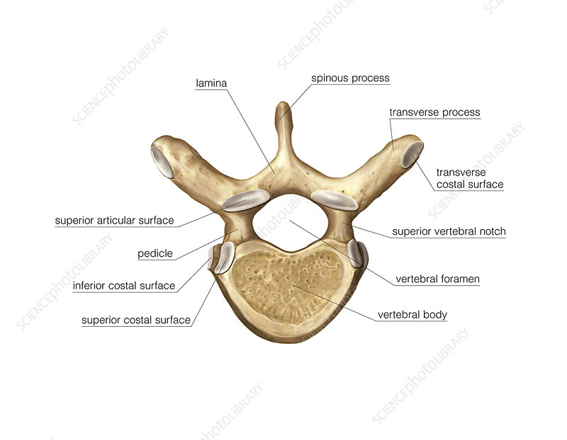 Next 12 vertebrae forming thoracic cage; only vertebrae that articulate with ribs