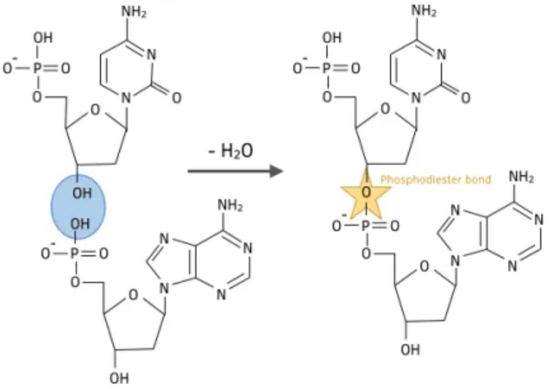 Nucleotide: Phosphate ion, deoxyribose sugar and a base.