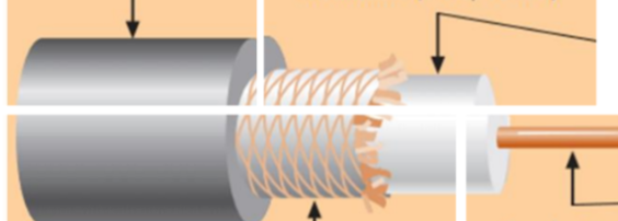 The shield protects signals from external interference and noise. This shield is built from the same metal that is used to build the core.
