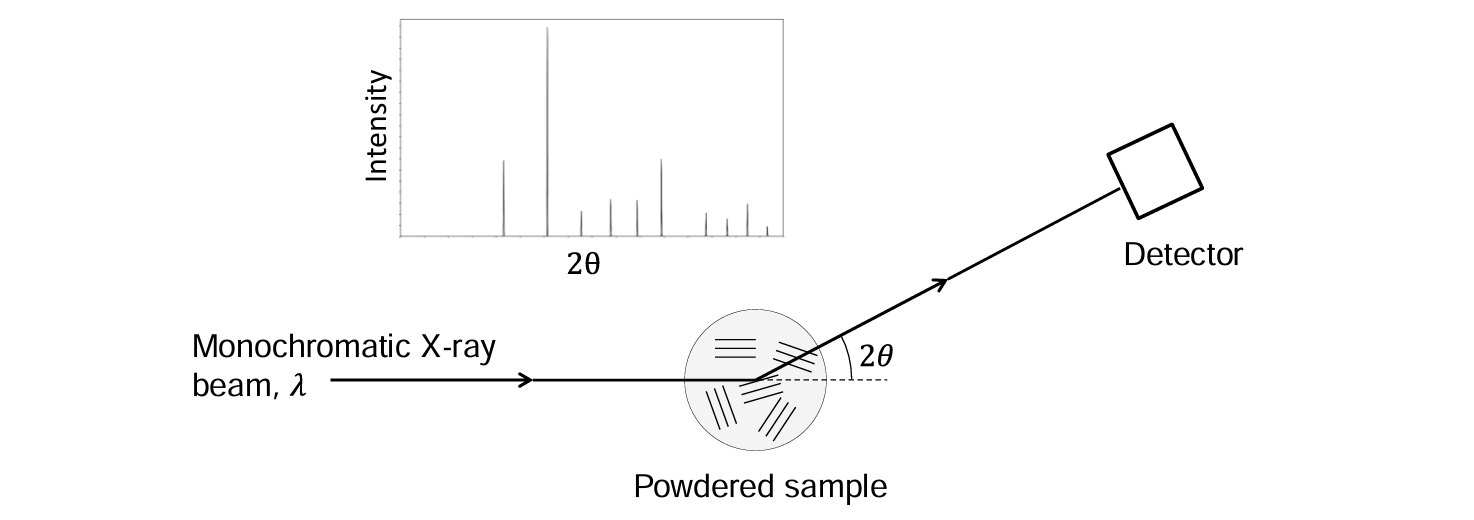 Diffraction leads to Debye-Scherrer rings of intensity at specific values of 2θ.