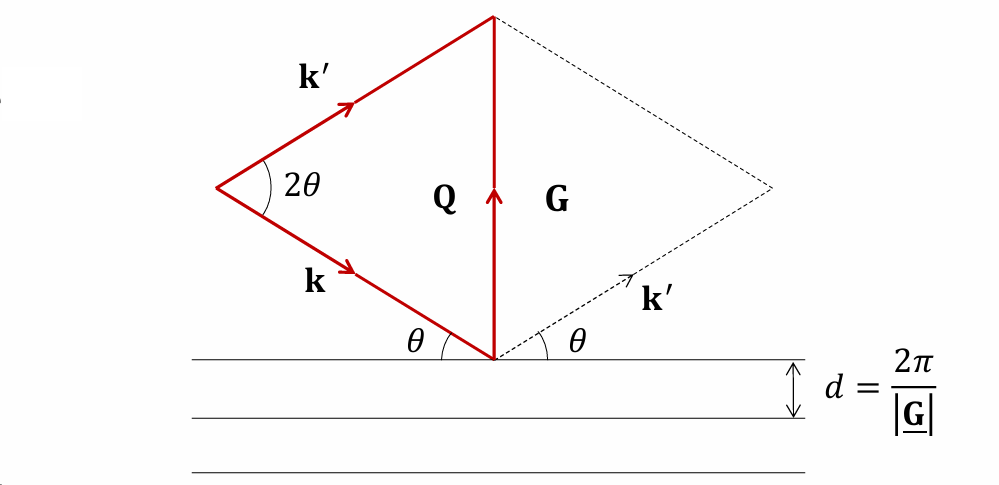 Laue condition for diffraction is Q=G, where Q is the scattering vector, Q=k’−k.